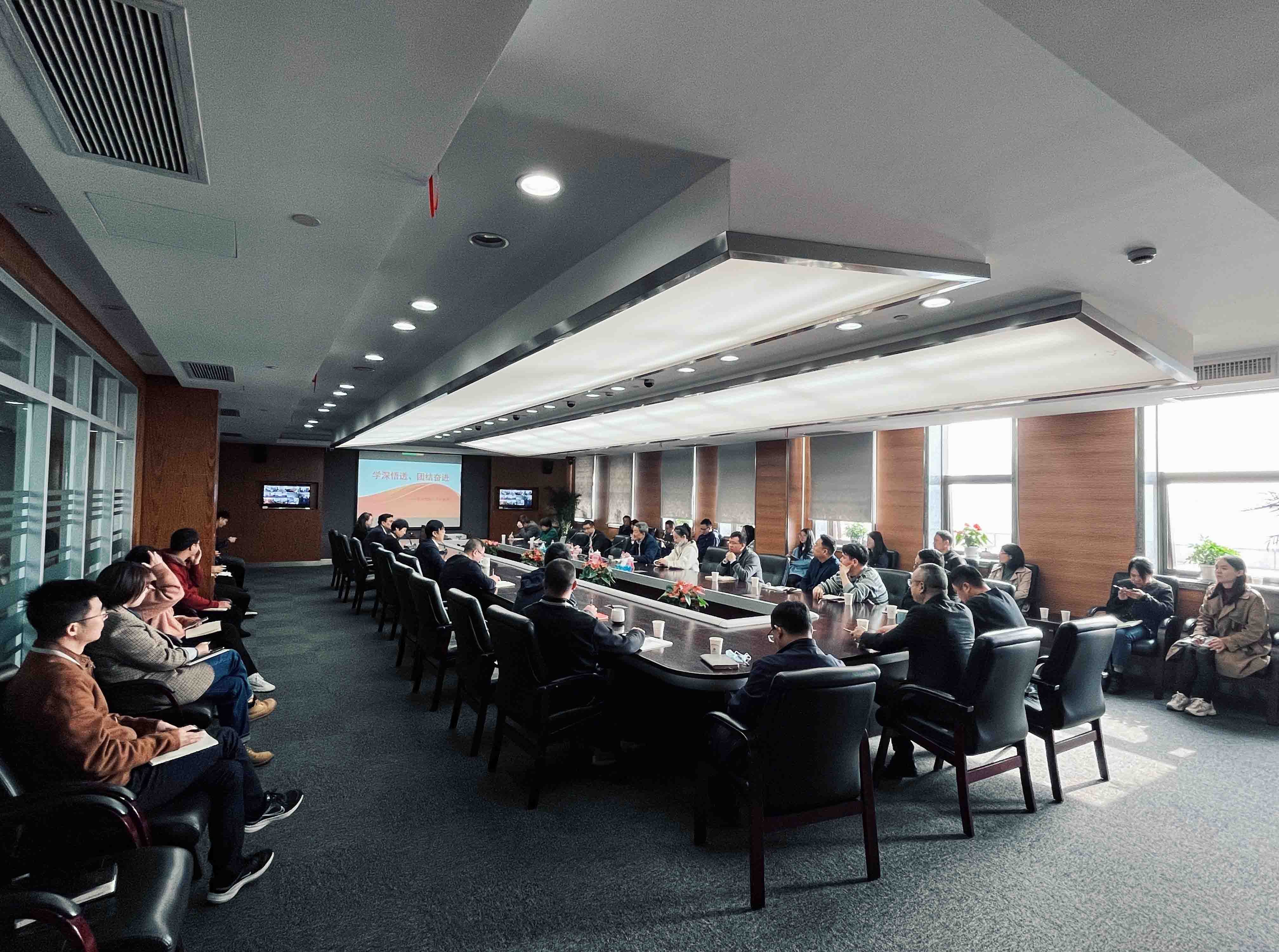何启明教授紧扣党的二十大报告原文,围绕牢牢把握过去五年工作和新时代十年伟大变革的重大意义、牢牢把握习近平新时代中国特色社会主义思想的世界观和方法论、牢牢把握以中国式现代化推进中华民族伟大复兴的使命任务、牢牢把握以伟大自我革命引领伟大社会革命的重要要求、牢牢把握团结奋斗的时代要求等五个方面对党的二十大精神进行了深入阐释。参会人员聚精会神聆听,认真撰写笔记。